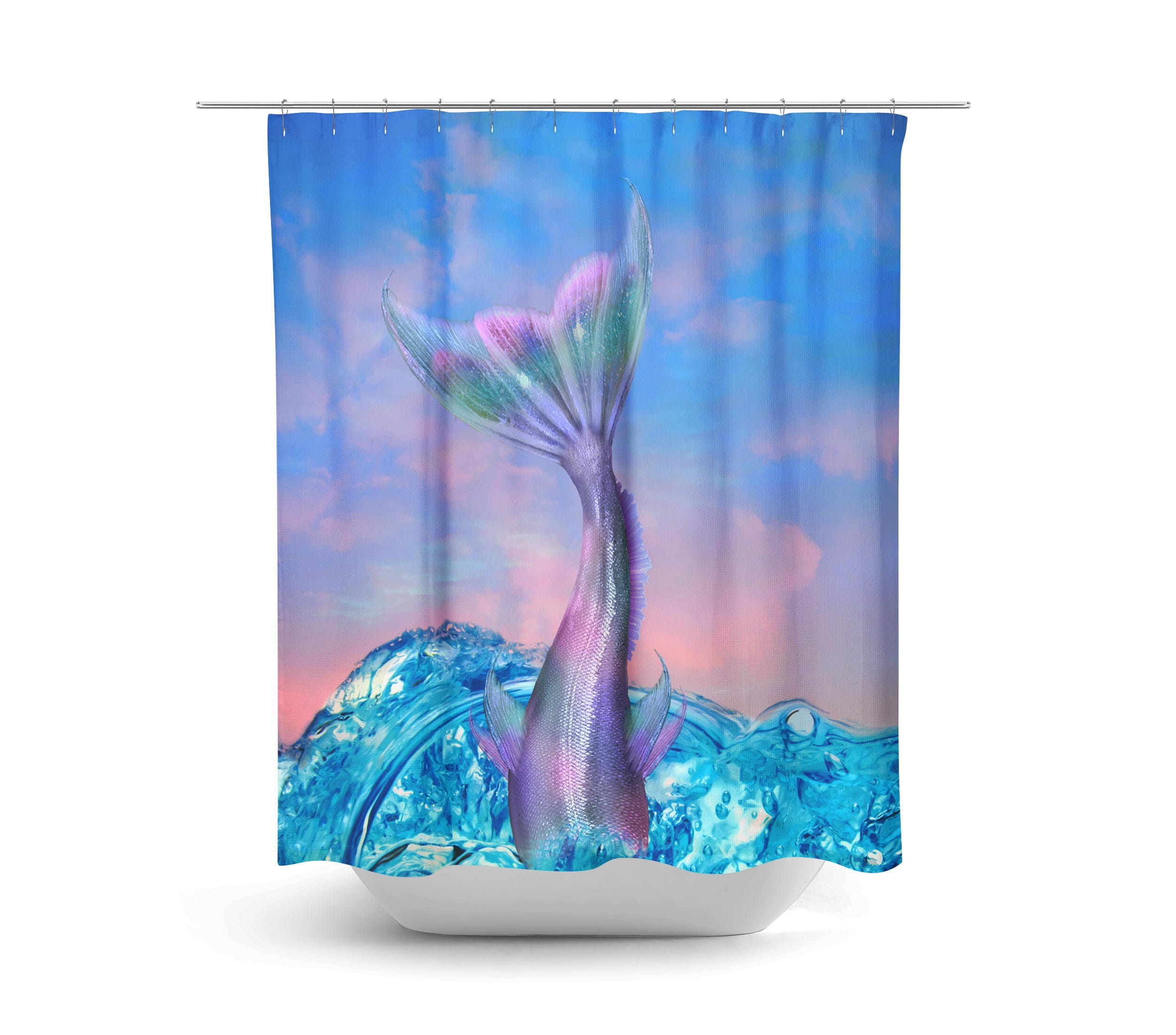 Images. Design your everyday with mermaid tail shower curtains you'll love to show off in your bathroom. Pink blue mermaid tail art cute princess feminine boho fabric shower curtain.